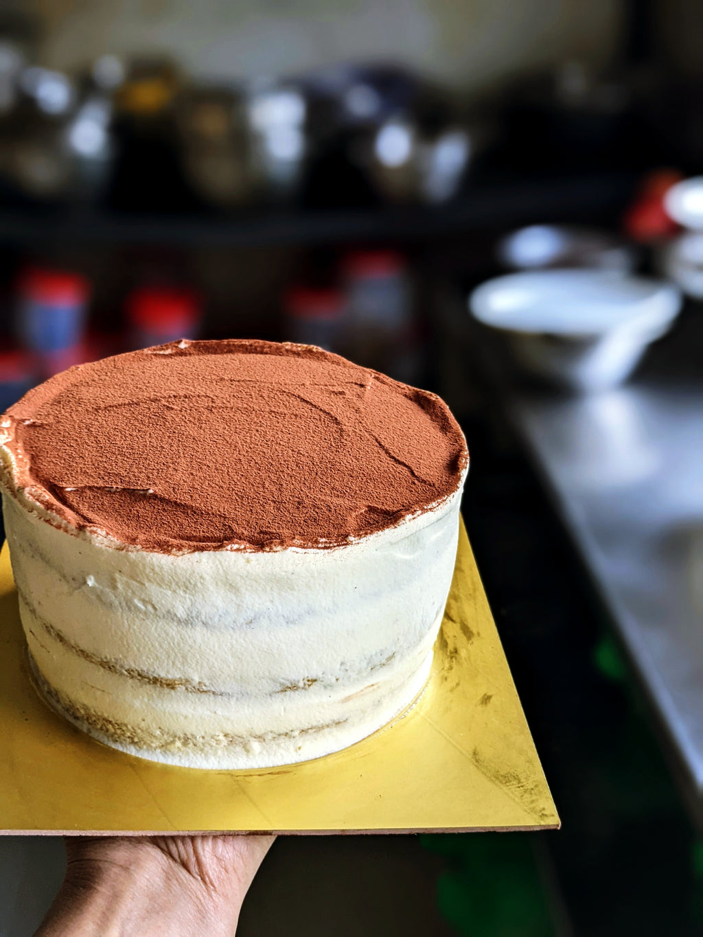 Almond Vanilla Cake with Cheesecake Frosting (eggless)