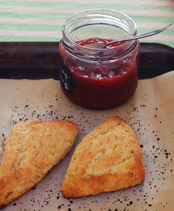 These are very lightly sweetened, moist and buttery and we are pairing them with our house-made compote and minimally sweetened whipped cream. Tea of our dreams.