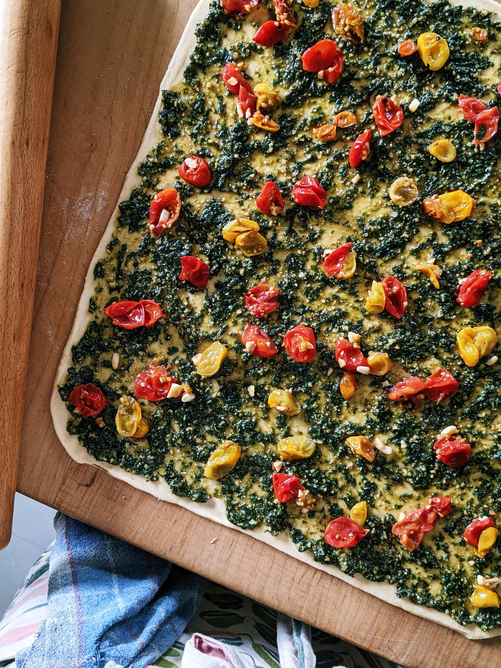 Basil Pesto & Roasted Tomato Sourdough Focaccia