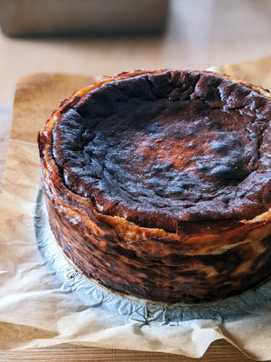 Ultra creamy and moist, this style of cheesecake comes from the Basque region of Spain. Usually cooked in wood fired ovens, at a very high temperature so that the sides are beautifully caramelized while the centre still is gooey and soft. This is baked without any crust, also making this gluten free and nut free.