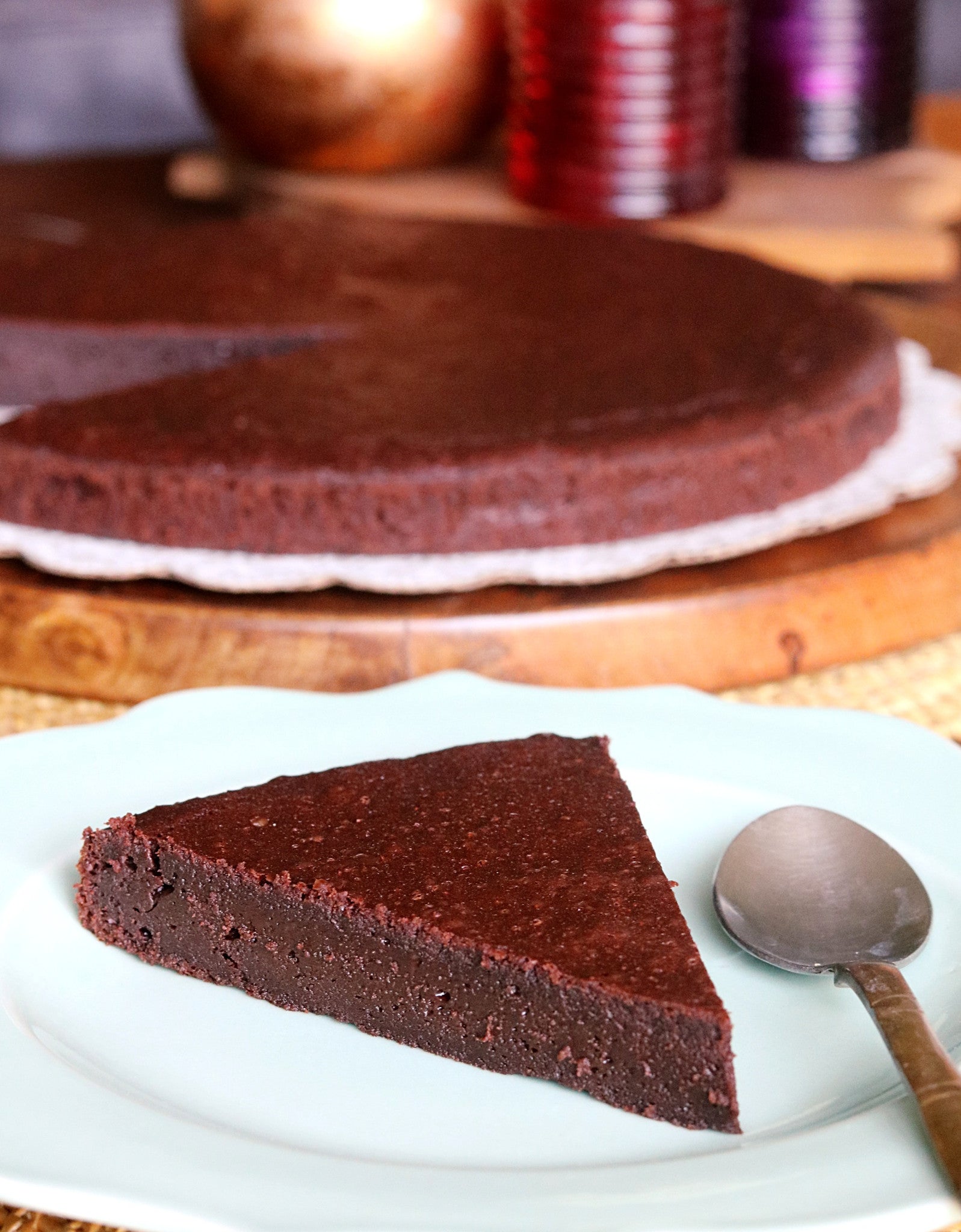 A dense yet oddly light texture and a big hit of deep, dark chocolate flavour - have a wedge with your afternoon coffee or jazz it up with a scoop of ice cream or whipped cream to serve as dessert! Made using Callebaut Chocolate (70%).