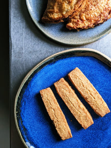 This is a spin on the classic Scottish shortbread but with a balance of sweet and salty that gives a beautiful Nankhatai vibe. We brown the butter to add extra flavour and nuttiness. A lovely accompaniment to tea/ coffee or a bowl of ice cream!