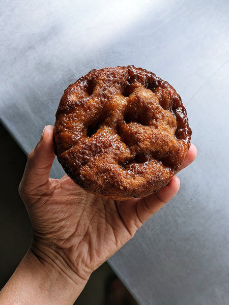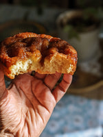 We were inspired by Danish style coffee cakes which are made with tender, buttery bread dough and are topped with a butter & sugar mixture right before baking. Here we have modified our Hokkaido style bread dough which is already soft and tender and use that as base. On top we have used a mixture of dark brown sugar, butter & a tiny bit of almond butter plus slivers of toasted almond. It's a delightful combination - try it!